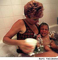 ALTERNATIVE THERAPY:Lisa Squier, D.C., of the Upledger Institute in Palm Beach Gardens, does cranio sacial therapy on Michael Sayih who is being distracted from the therapy by mother, Patty. Patty Sayih is nervous. It has been over two years since she rejected the medical advice of pediatric neurologist Luis Alvarez and put her brain-injured child through a difficult series of alternative therapies instead. Now she is back in Alvarez's office, hoping he will tell her she made the right decision, that all the sacrifice and pain was worth it, that Michael has improved dramatically. CO-O-O-LD: Part of the Sayih's alternative therapy is cold water stimulation of Michael's nerves.